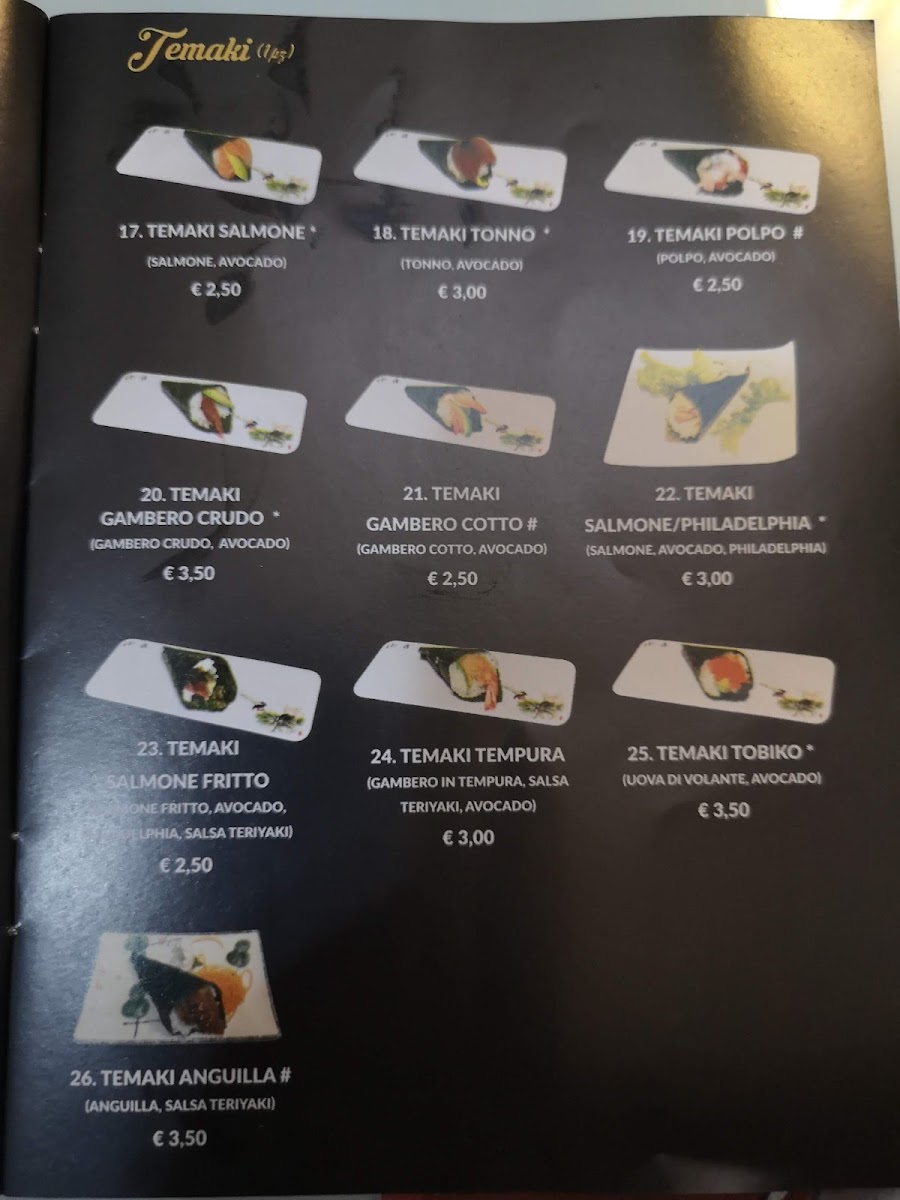 The menu boasts a variety of enticing options, from Hosomaki like the crisp Fritto Salmone to fresh Tonno sushi, appealing to both novice and seasoned sushi enthusiasts. For those craving something unique, the Temaki offerings, particularly the scrumptious Salmon Fritto and Avocado rolls, are a must-try.